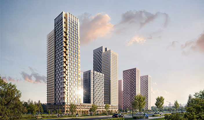 Проект находится в окружении парков и отличается насыщенным благоустройством. Здесь есть пространства для игр и спорта, комплекс с бассейном, пешеходный бульвар для прогулок, современные детский сад, школа и поликлиника.