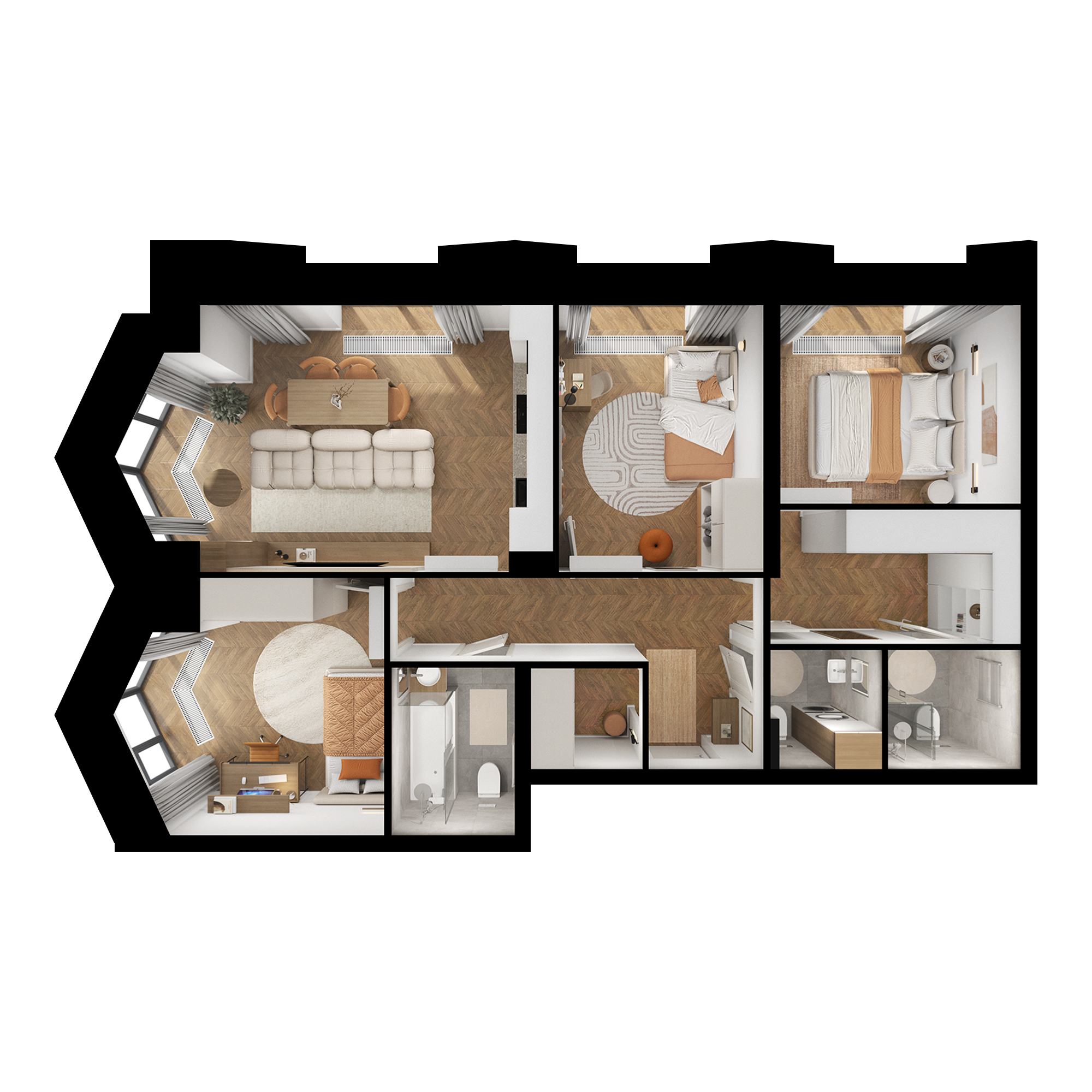 Больше комнат сначала